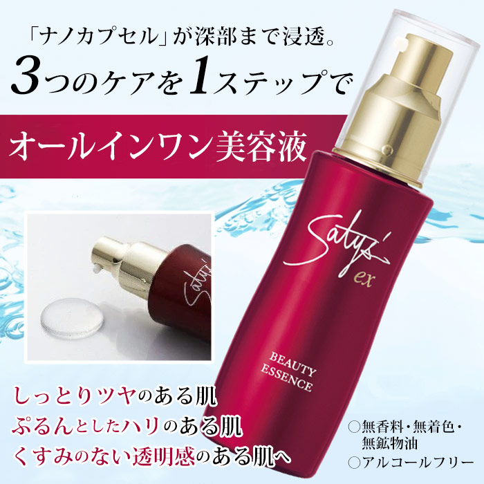 「サティスEX ビューティーエッセンス」は、選りすぐりの配合成分をナノカプセルに包み込み、お肌の奥深くまで届けます。