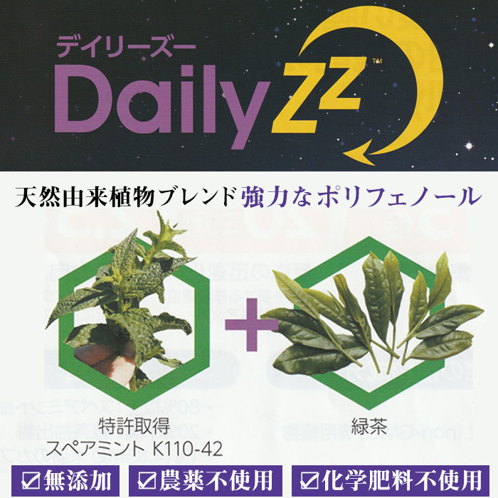 ケミン社「DailyZz(デイリーズー)」は、天然由来の強力なポリフェノール、スペアミントに含まれる『ロスマリン酸』・緑茶に含まれる『没食子酸エピガロカテキンガレート』をバランスよく配合しています。